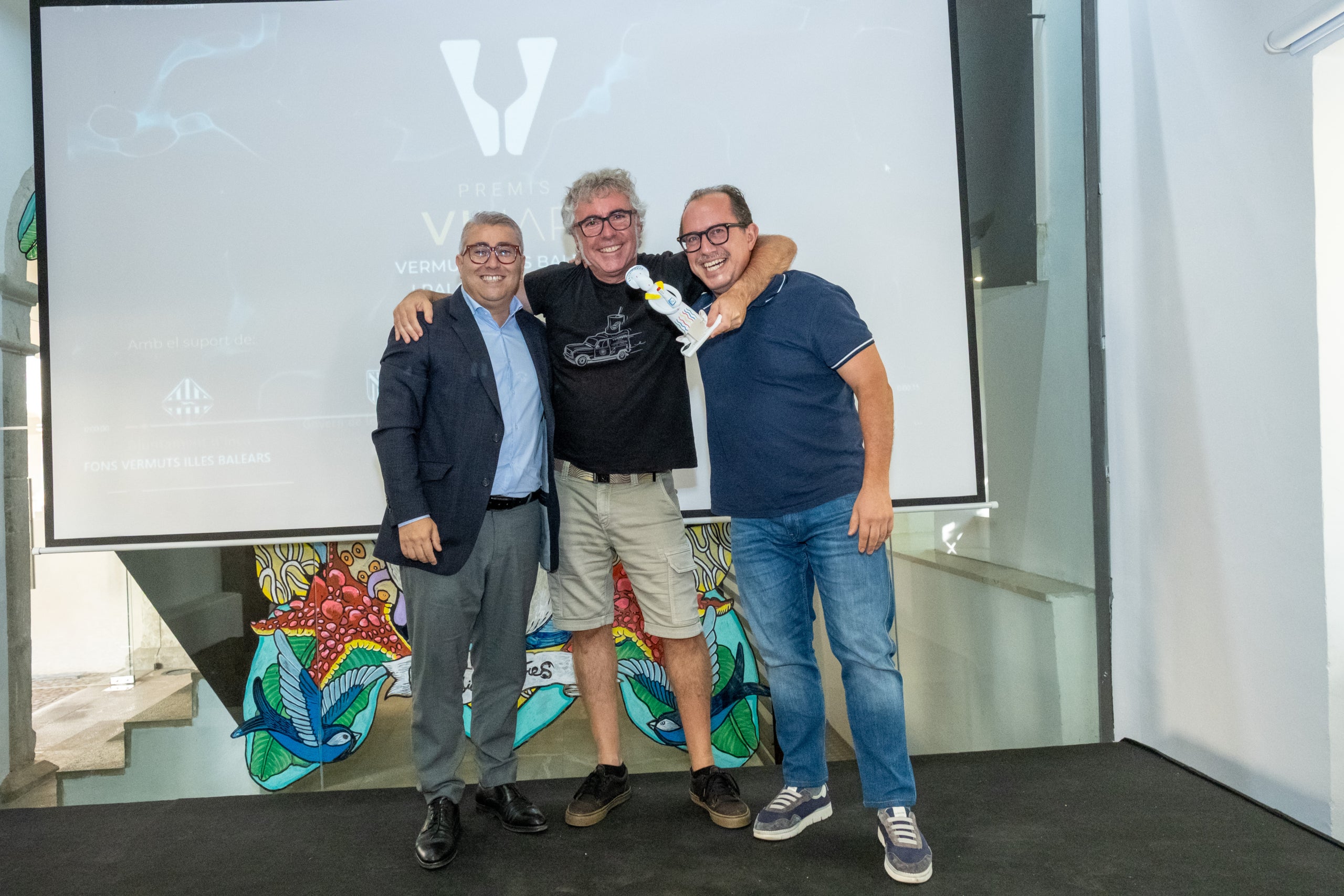 Salvador Cot, director de Balears Vadeví, lliurà el premi al millor vermut negre a Xisco ALbertí, La Vermutera, i Rafa Martín, de Brass Club pel Luis Adolfo y Lorenzo/Aditiva