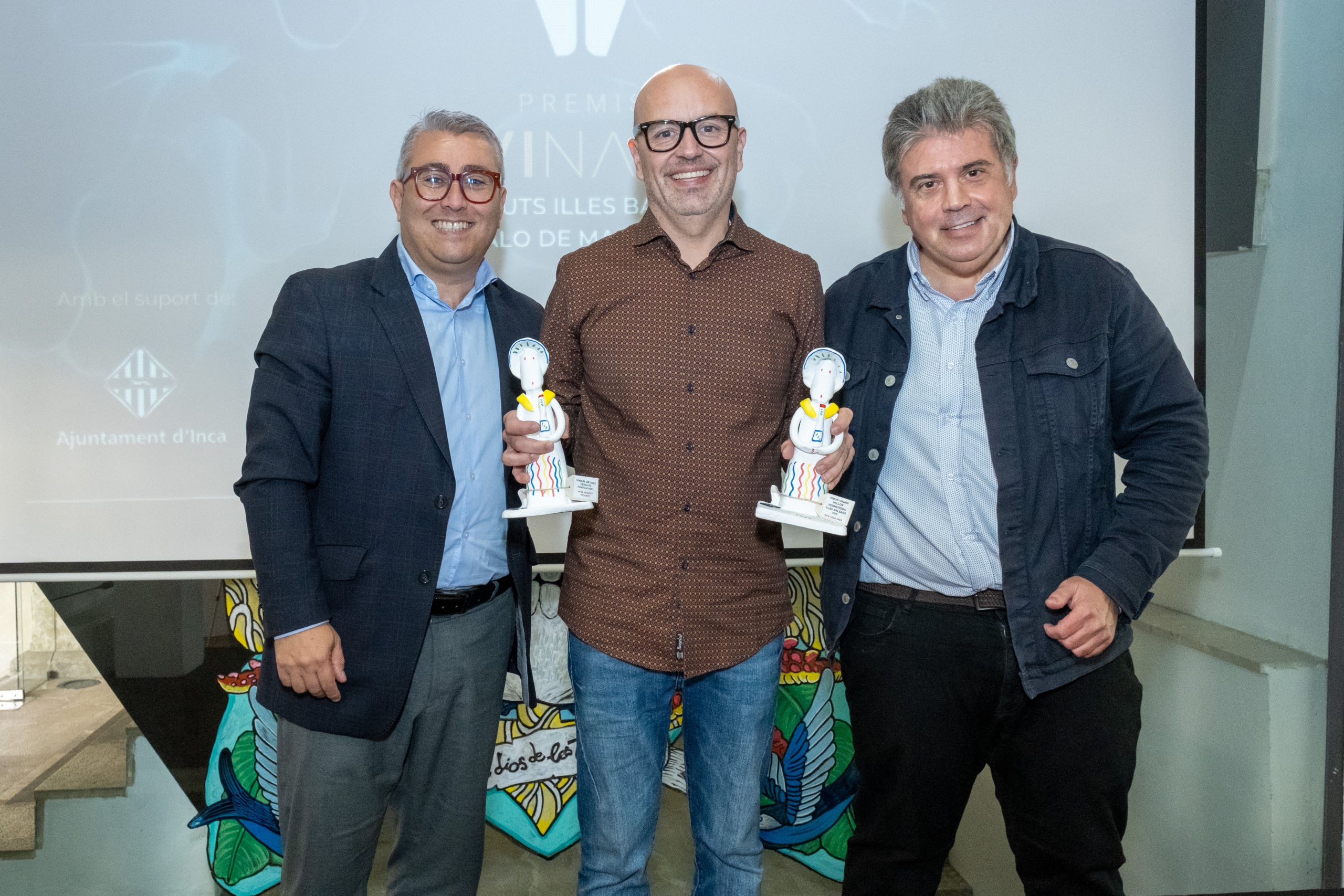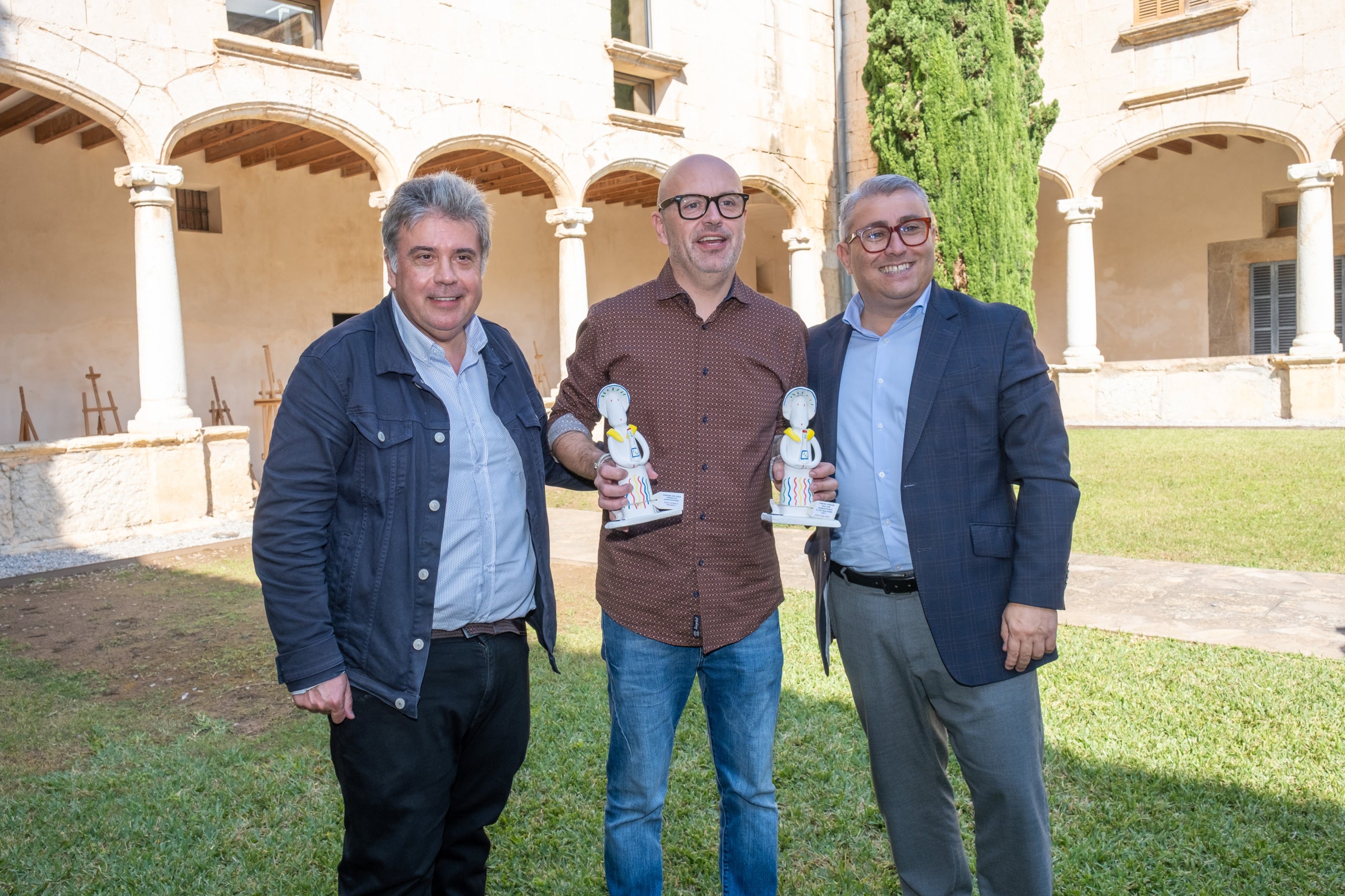 El batle d'Inca, Virgilio Moreno, Jaume Mir, de Ca Sa Miss, i el batle de Sa Pobla, Biel Ferragut amb els guardons a la Millor Vermuteria de Mallorca i al Vermut Picant, guanyador de la categoria d?Innovadors /Aditiva