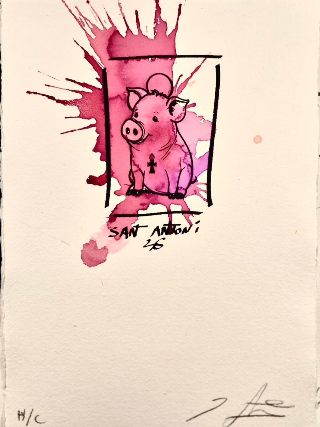 Ara que celebram Sant Antoni, has firmat el disseny de l’escapulari de Sant Antoni, d’enguany, com va ser l’encàrrec, què suposa per a tu, com a pobler i per què triares la imatge del porquet?