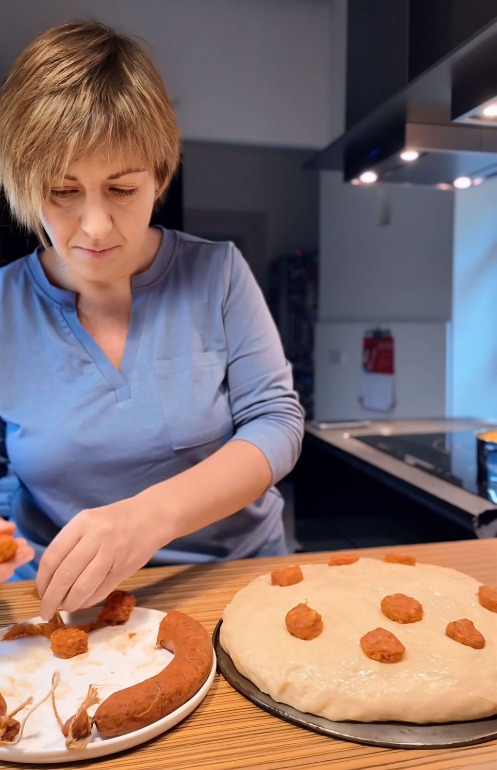 Aquesta pasta ara ha de tovar, i aquí ve el secret: com més tous es fan, més esponjosa surt. Jo en sol fer quatre, i un altre damunt la llauna, però hi ha gent que en fa un o dos i també surt la mar de bona.