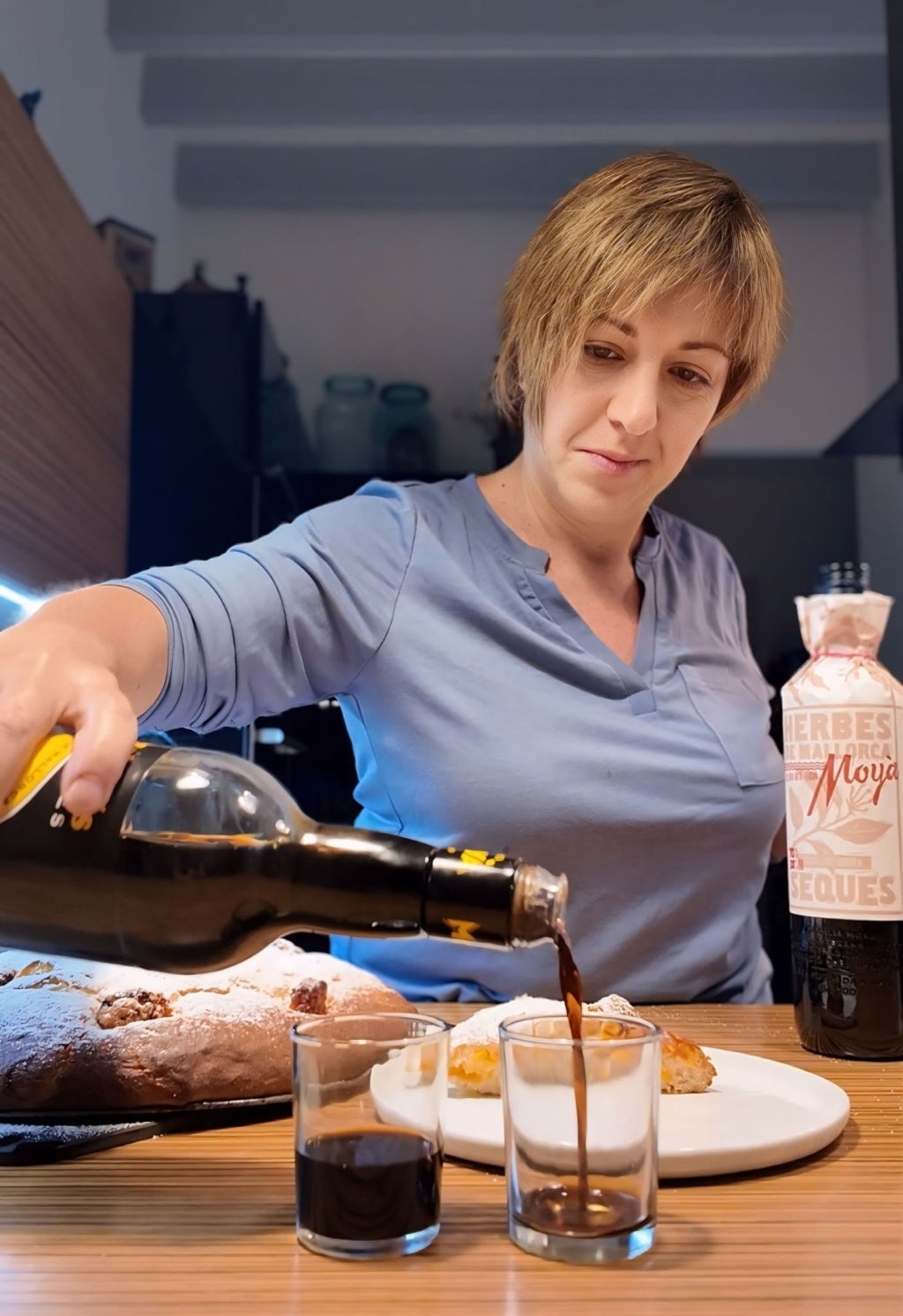 Enfornam a 165°–170 °C durant uns 20 minuts (segons cada forn). Quan és tèbia, li feim una bona ensucrada de sucre en pols, i ja es pot menjar!