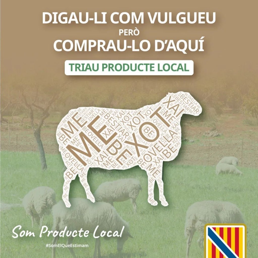 La Conselleria d’Agricultura, Pesca i Medi Natural ha posat en marxa la campanya de promoció de me de les Illes Balears. Amb l’eslògan Digau-li com vulgueu però comprau-lo d’aquí. Triau Producte Local, la Direcció General de Qualitat Agroalimentària i Producte Local recorda les diferents maneres d’anomenar-lo, com pot ser xot, me, be, ovella, xai, bestiar… i animar a la població al seu consum durant les festes de Pasqua.
