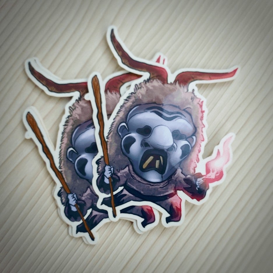 L’etiqueta té diferents detalls: Té el nom popular de cada dimoni, està enumerada per poder seguir la col·lecció i s’informa de quin poble és originari aquell Dimoni.