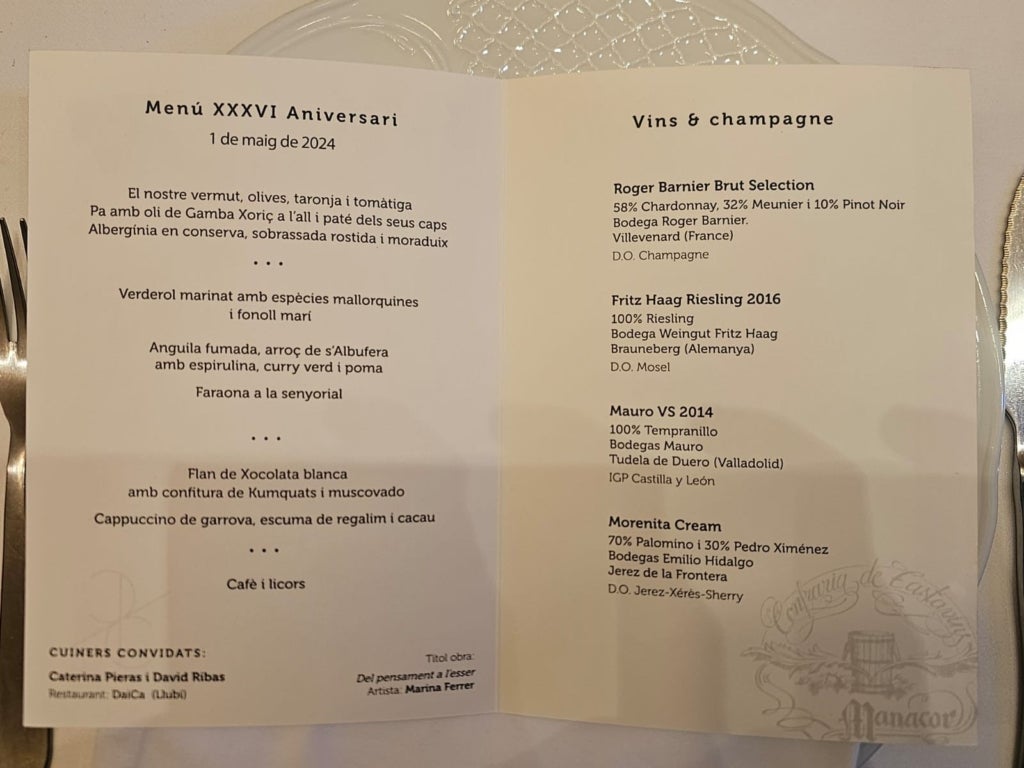 Del contingut d’aquesta Setmana Cultural del Vi, que no s’ha presentat encara, poc sabem, però sí que comptarà, com és habitual, amb un tast dels vins de la DO Pla i Llevant, un curs de tast i altres activitats entorn del vi i la música i el cinema. El que sí sabem és com serà el cartell per què de fet, la imatge que acompanyava el menú del dinar serà la que il·lustri el cartell d’aquesta setmana cultural. És obra de l’artista Marina Ferrer, que ha guanyat el concurs de cartells d’enguany. És interessant destacar també, en l’àmbit gastronòmic, que el dinar fou servit per Caterina Pieras i David Ribas, DaiCa, del restaurant de Llubí.
