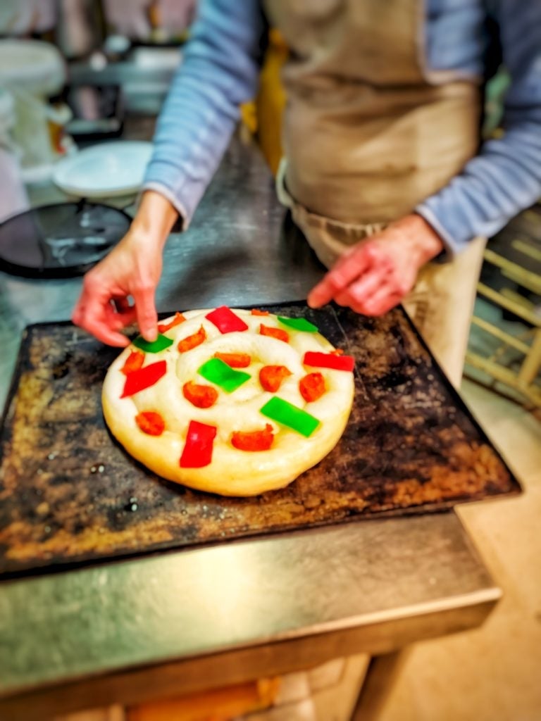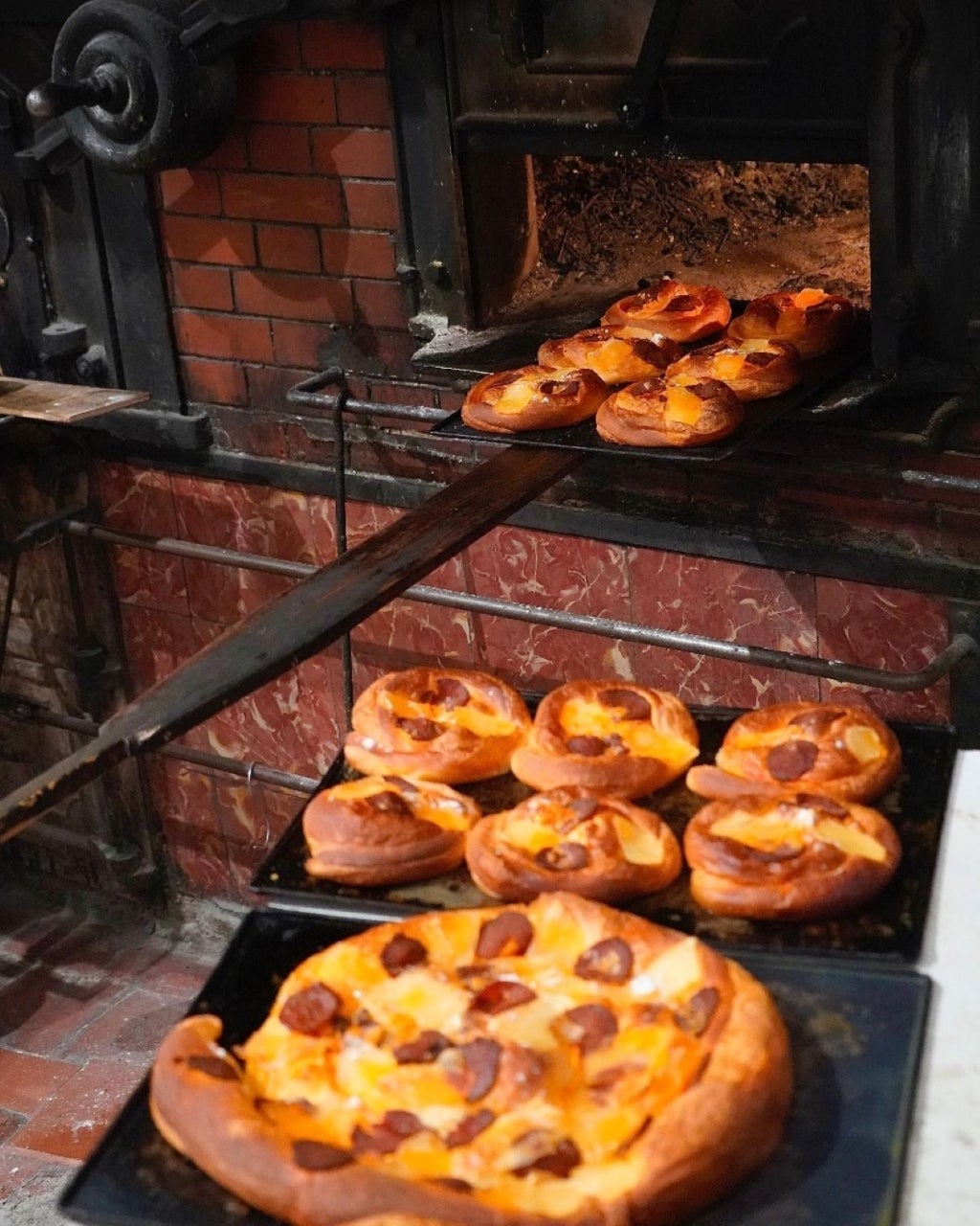 Aquesta ensaïmada que veis a les imatges es fa amb la mateixa pasta de l’ensaïmada llisa, però per damunt s’hi afegeixen els bocins de sobrassada i de carabassat, que la converteixen en una de les més preuades llepolies. Des de la DO Binissalem ens arriben imatges i un suggeriment que aprofitam per traslladar-vos: Acompanyau l’ensaïmada de tallades amb un bon vi negre 100% Manto Negro, emblemàtic d’aquesta denominació d’origen. Segons indica Marga Amat, directora de la DO Binissalem, és el vi que escau a aquestes postres perquè hi diu molt amb el porc que acompanya aquest dolç i l’equilibra. També suggereix un vi escumós o un vi dolç, que també podrien ser un excel·lent complement per aquest dolç típic del Dijous Llarder.