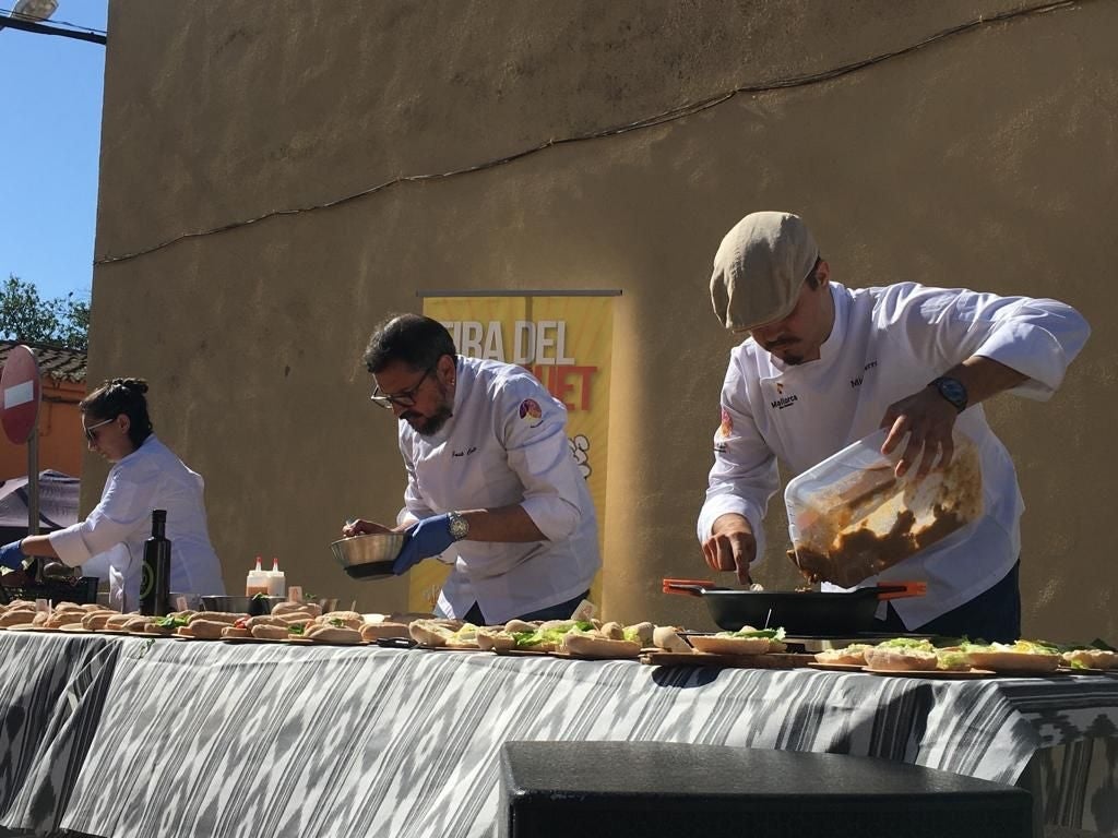 La Fira del Llonguet des Pil·larí ens deixa imatges que fan menjera i que expliquen la bona salut que gaudeix ara el panet més emblemàtic de Ciutat. sEntre les activitats que s’hi organitzaren, una demostració culinària, la “Llonguet gourmet” a càrrec de tres xefs d’ASCAIB: Miquel Serra, Marga Brunet i el president de l’organizació de cuiners, José Cortés.