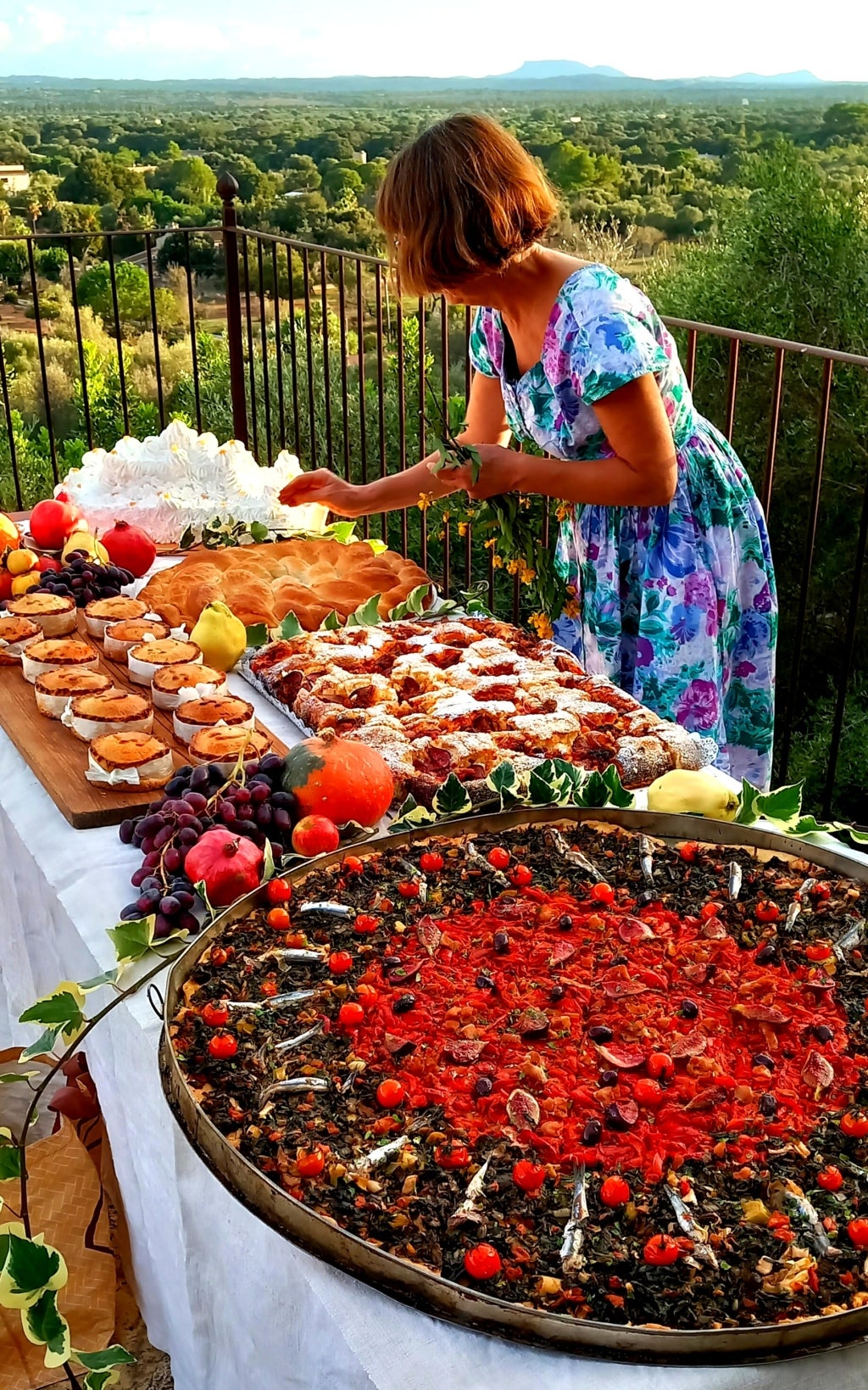 L’acte de lliurament del guardó va venir precedit d’una mostra de cuina en la qual, entre tonades i ball i pa compartit, Tomeu Arbona elaborà una ensaïmada de patata feta amb trunyella, que “la repadrina la feia així, i contava que es feia a les cases senyorials en dies assenyalats”, digué Arbona. Un altre dels plats estel·lars de la vetlada va ser el coixí imperial, que han conservat poques confiteries com Can Fresquet i Cas Net, de Palma. El tast també passà per les panades dolces. Finalment, oferiren una coca tovada amb pasta de crespells d’Inca.