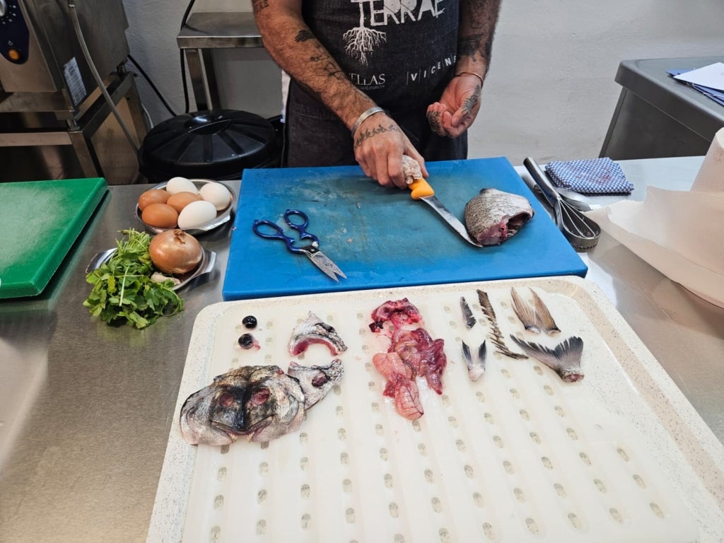 El taller també ha inclòs una sessió pràctica a càrrec del xef David Rivas, del restaurant Terrae, distingit amb una Estrella Verda Michelin pel seu compromís amb la sostenibilitat. Durant l’activitat, els estudiants han treballat amb un producte del mar balear, el sarg, i han après tècniques de manipulació, de neteja, de filetejat i d’aprofitament del peix a la cuina.