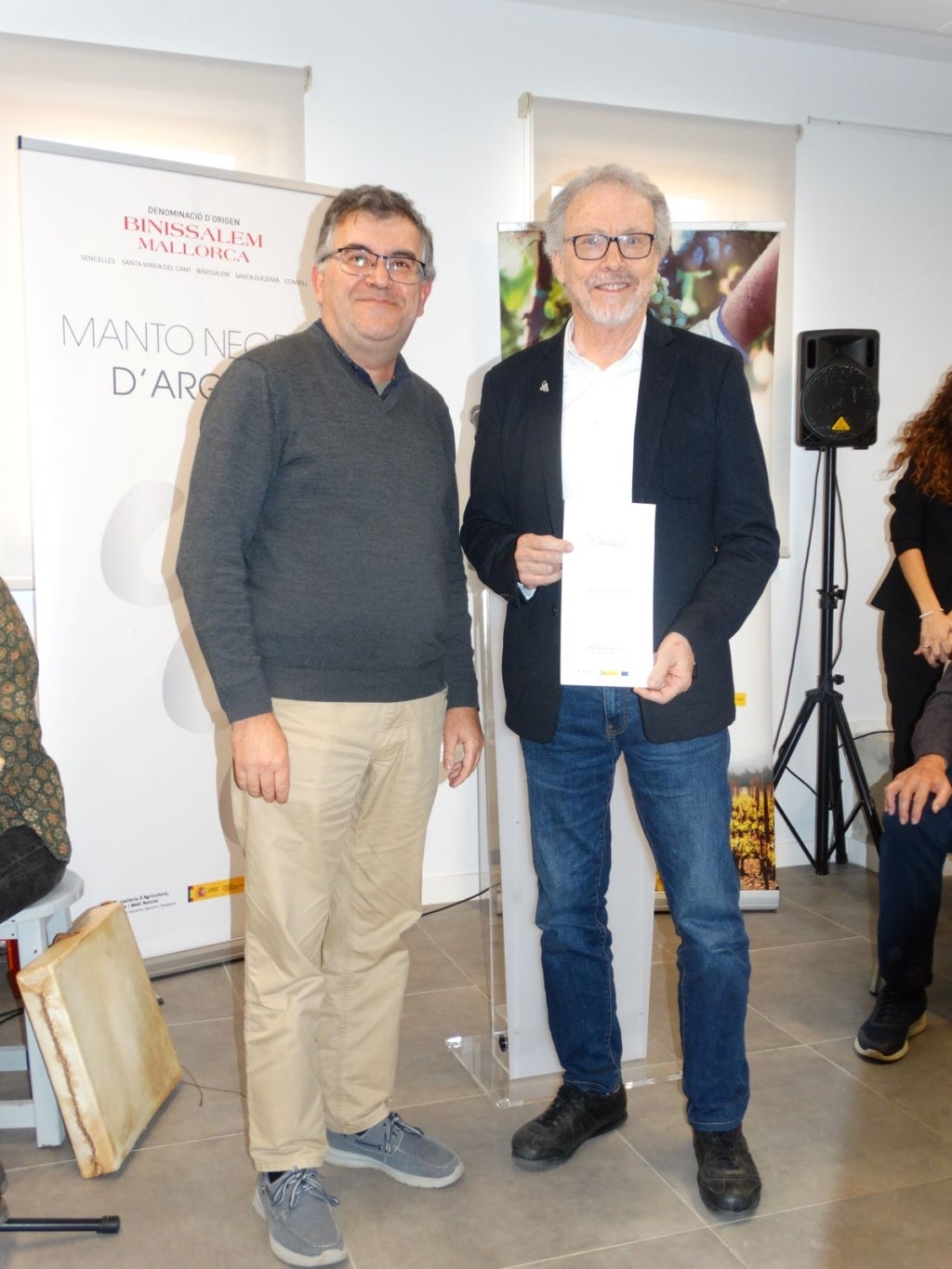 Ara que s’acosta el final de 2024 arriben dies de retre homenatges i fer reconeixements públics i el món del vi no es queda al marge. Aquest cap de setmana la DO Binissalem ha lliurat els Mantonegro d’Argent a dos personatges que han col·laborat en la difusió dels vins de la comarca de la Denominació d’Origen. Aquest guardó va ser creat pel Consell Regulador de la DO Binissalem l’any 2015, amb motiu del seu 25 aniversari, amb l’objectiu de reconèixer a persones o entitats per la seva dedicació i contribució al món de la viticultura, el vi i la cultura del vi o, a persones destacades del món de la gastronomia, cultura, esports, ciència… A tots ells se’ls fa lliurament d’una insígnia de plata, en forma de ram que simbolitza el raïm Mantonegro, varietat principal en la DO Binissalem, fent-se també lliurament d’un diploma que reconeix la trajectòria professional de cada guardonat.