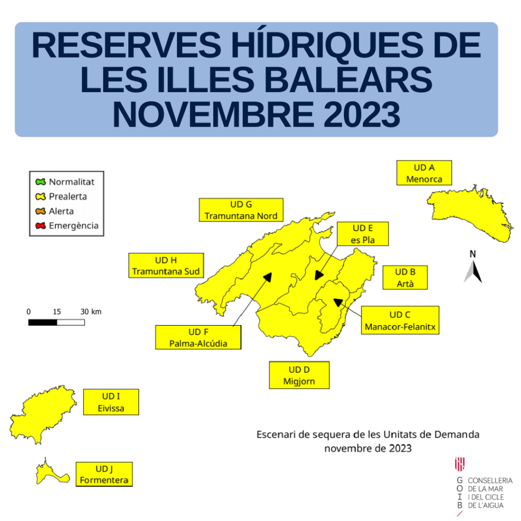 Més del 83,3% del territori de les Illes Balears està en situació de prealerta, reconeix la conselleria del Mar i del Cicle de l’Aigua. I Formentera ja ha entrat en situació d’emergència. Aquesta distribució indica una necessitat de gestió continuada i adaptativa dels recursos.