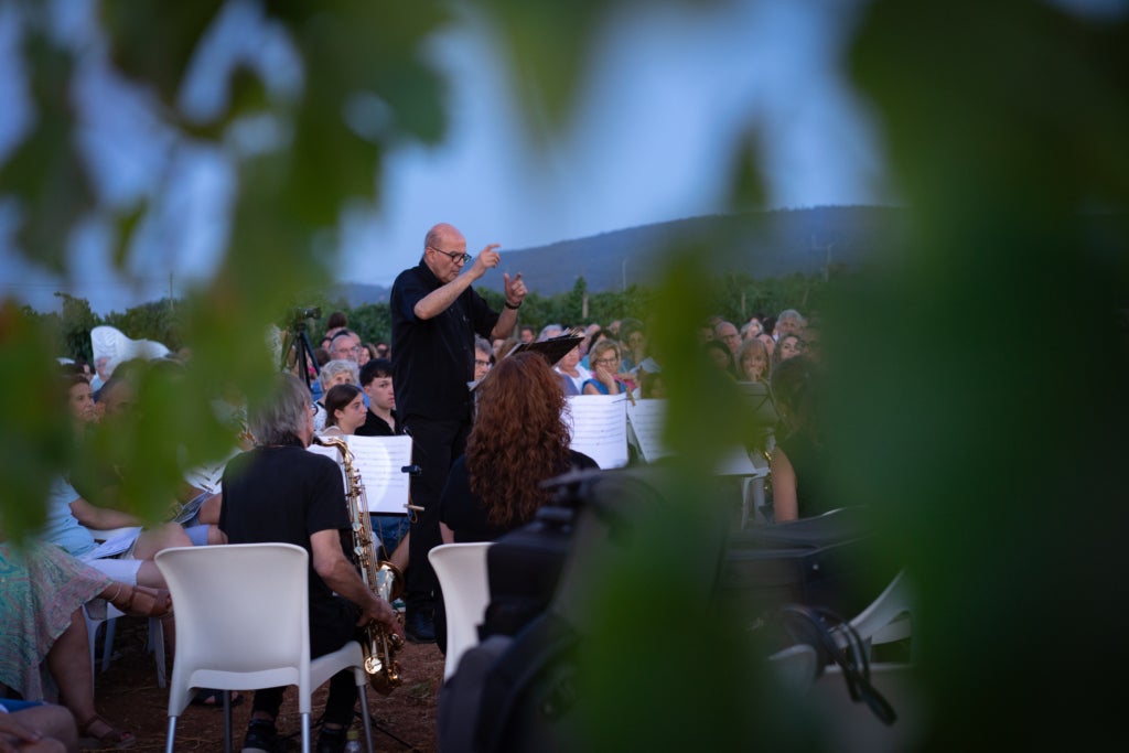 Aquesta nit l’instrument que sonen o que toquen per interpretar música es transmutà en la seva veu per recitar els poemes del context que vivim actualment, poemes relacionats amb la pau i contra les guerres incíviques i els genocides que malauradament tenim molt a prop a Ucraïna i Palestina, altres poemes eren més reflexius sobre la pau interior que cercam les persones en el transcurs de les nostres vides. Quatre veus que ompliren i perfumarem els raïms de la vinya de can Pau, que per setembre es transformaran en un vi rosat i negre ple de melodies i de paraules de pau.
