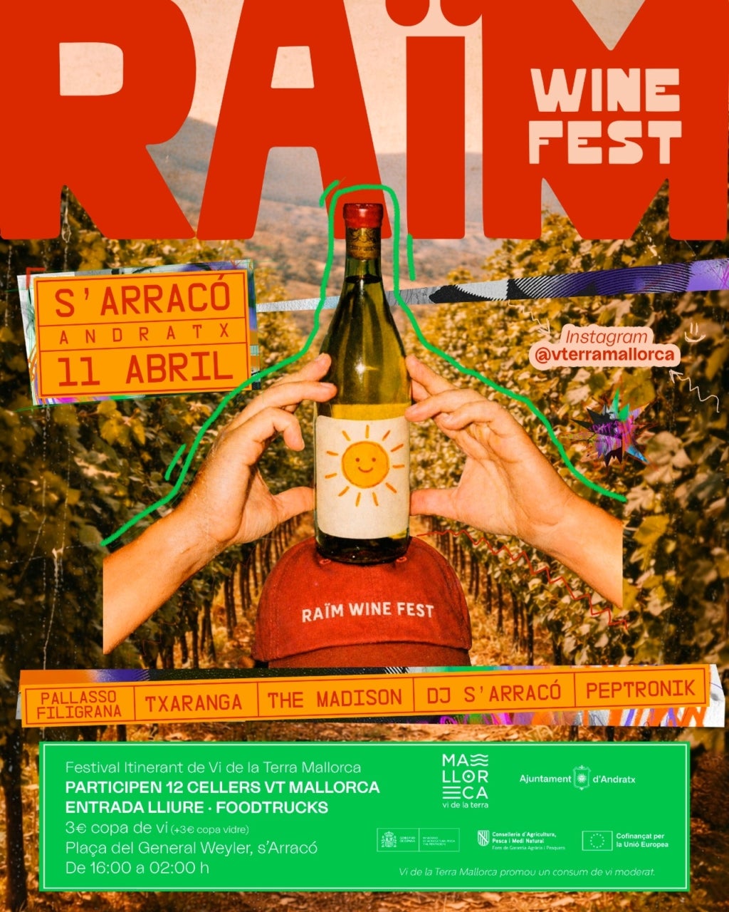El festival itinerant de Vi de la Terra Mallorca, el Raïm Wine Fest, arranca l’any 2026 a S’Arracó (Andratx). Es tracta de la catorzena edició d’un festival, ja consolidat, que acosta els vins que s’elaboren a Mallorca al públic jove i familiar, a través d’un consum responsable, en un espai que ofereix música en directe, activitats per als més petits i una variada oferta de producte local i foodtrucks.