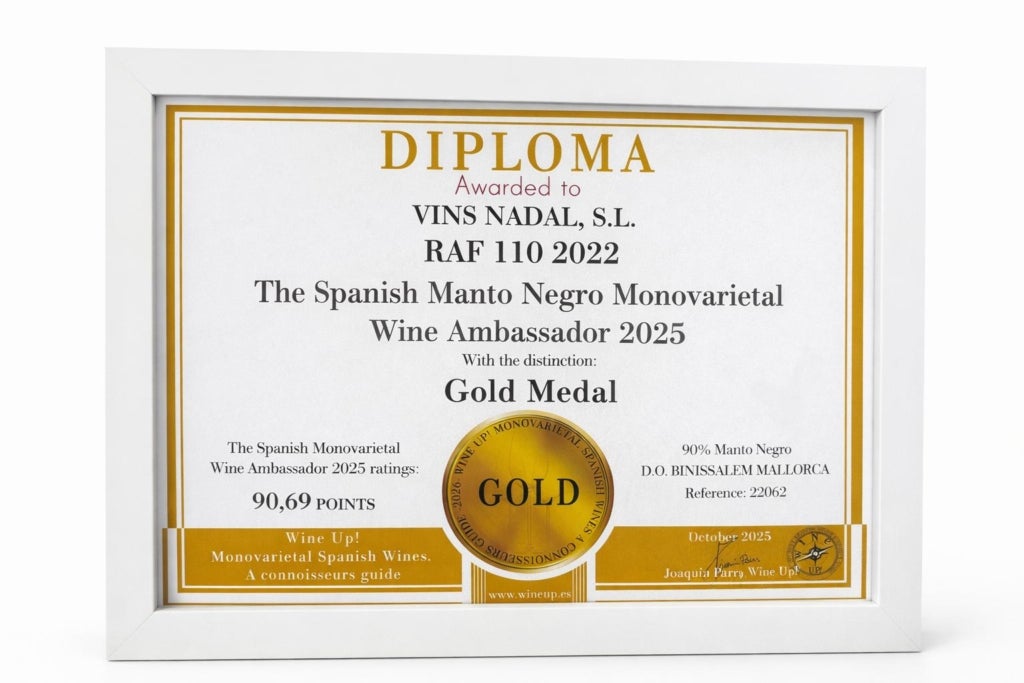 I en el marc d’aquesta gala, Vins Nadal va fer un paper destacat amb el reconeixement a un dels seus varietasl emblemàtics: RAF 110 2022, que va ser reconegut com Mantonegro Wine Ambassador. “Aquest premi posa en valor una de les varietats més emblemàtiques de la nostra terra: la Mantonegro, un raïm autòcton profundament lligat a Binissalem i a la seva història vitivinícola”, deia Esperança Nadal a ran de l’obtenció d’aquest guardó. “Però, sobretot, és un reconeixement al treball en la vinya, al respecte pel que som i a la voluntat de continuar cuidant les nostres arrels. Rebre aquest reconeixement sempre agrada ja que és una forma de reconèixer la teva feina. Moltes vegades, degut a la situació del mercat, saturació, canvi climàtic, situació geopolítica… no saps si el cami que estàs prenguent és el que toca, i aquests premis són un reconeixement no només al vi, sino a la filosofia i cami pres”.
