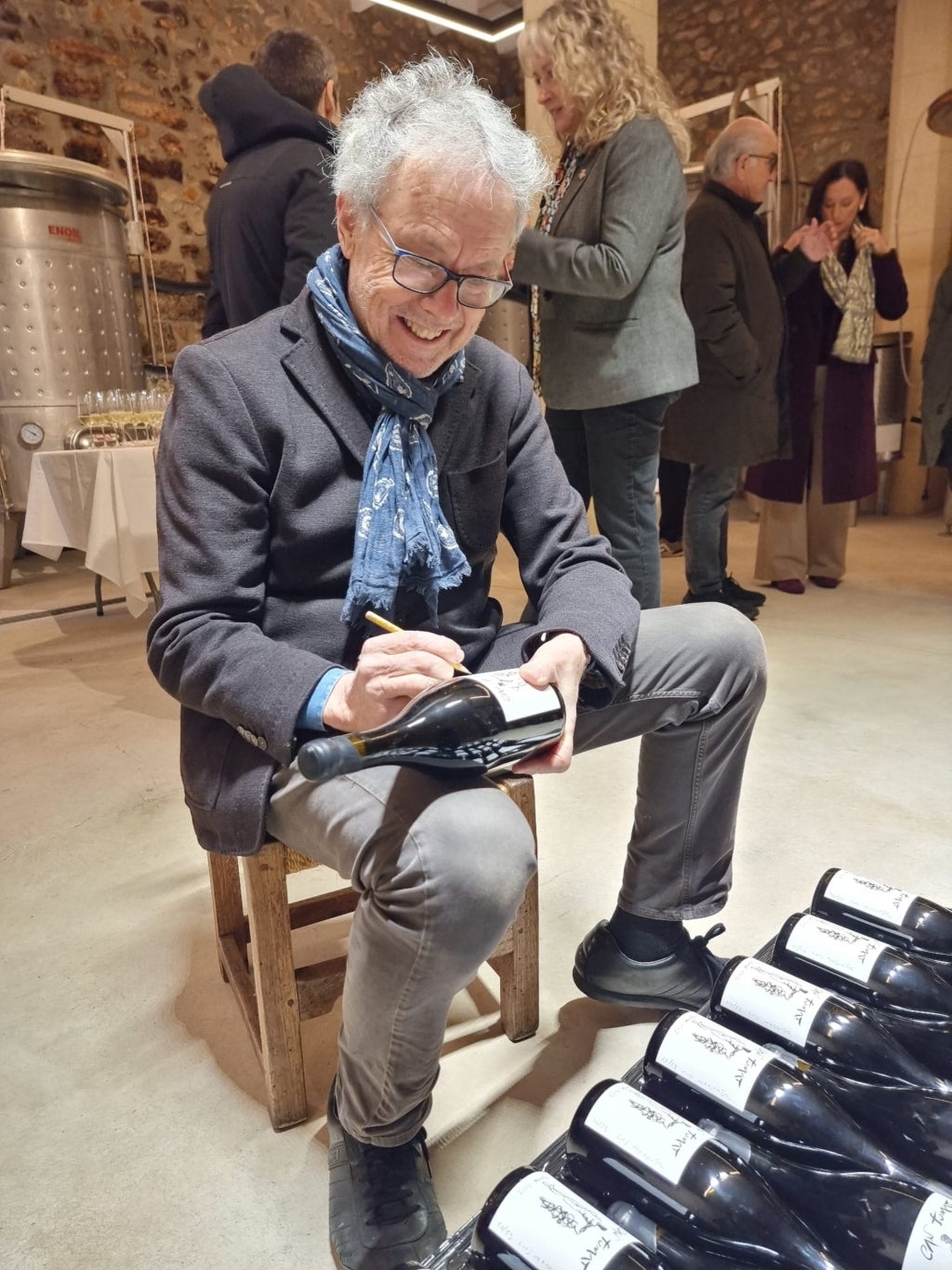 La trobada es va fer a les instal·lacions del celler en presència d’amics i autoritats que volgueren ser presents a l’acte. “És un vi elaborat íntegrament amb raïm de la varietat Syrah 100% de l’anyada de 2023 del qual hem fet 53 botelles, només. Volem posar en valor la intersecció entre art contemporani i tradició vitivinícola, i contribuir a la projecció cultural del municipi com a espai de creació, identitat i diàleg entre disciplines”, afirmava Toni Martí.