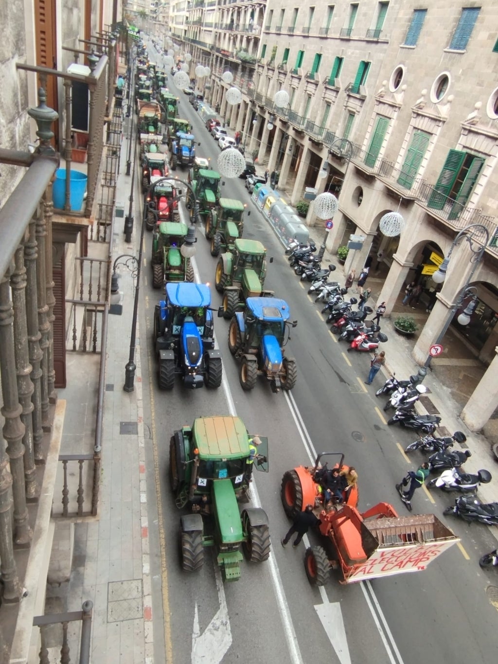 Sortien a primera hora des dels quatre punts cardinals de Mallorca i s’anaven concentrant a les portes de Ciutat. Diuen els que ho recorden que mai no s’havia vist una concentració tan grossa de tractors, més de 300, que han anat per tot el centre de Palma fins a arribar a la Delegació del Govern on han fet palesa la protesta. Molts ciutadans s’han commogut per les proclames i les pancartes que veien penjades dels tractors, grossos i petits. Pagesia o mort, es podia llegir, menjareu turistes, hotels o xalets. Airbnb no es menja, Mallorca serà verda o no serà i totes aquelles que feien referència a l’encariment dels preus de producció o la burocràcia que ofega els pagesos: Un temps els ases llauraven i ara ens governen, volem eleccions al camp i reivindicant “preus justos” per poder viure.