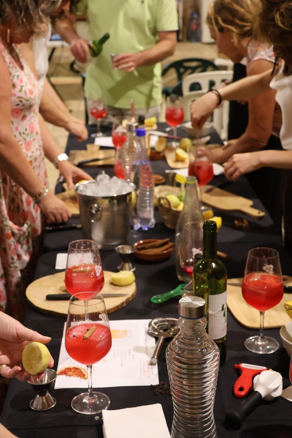 Finalitzada aquesta primera part, Nuria Basilio de @mallorcaamenity, col·laboradora de l’acció, va dirigir un taller de cocteleria realitzat amb els mateixos vins del tast, elaborant dos còctels refrescants i de baixa graduació alcohòlica.