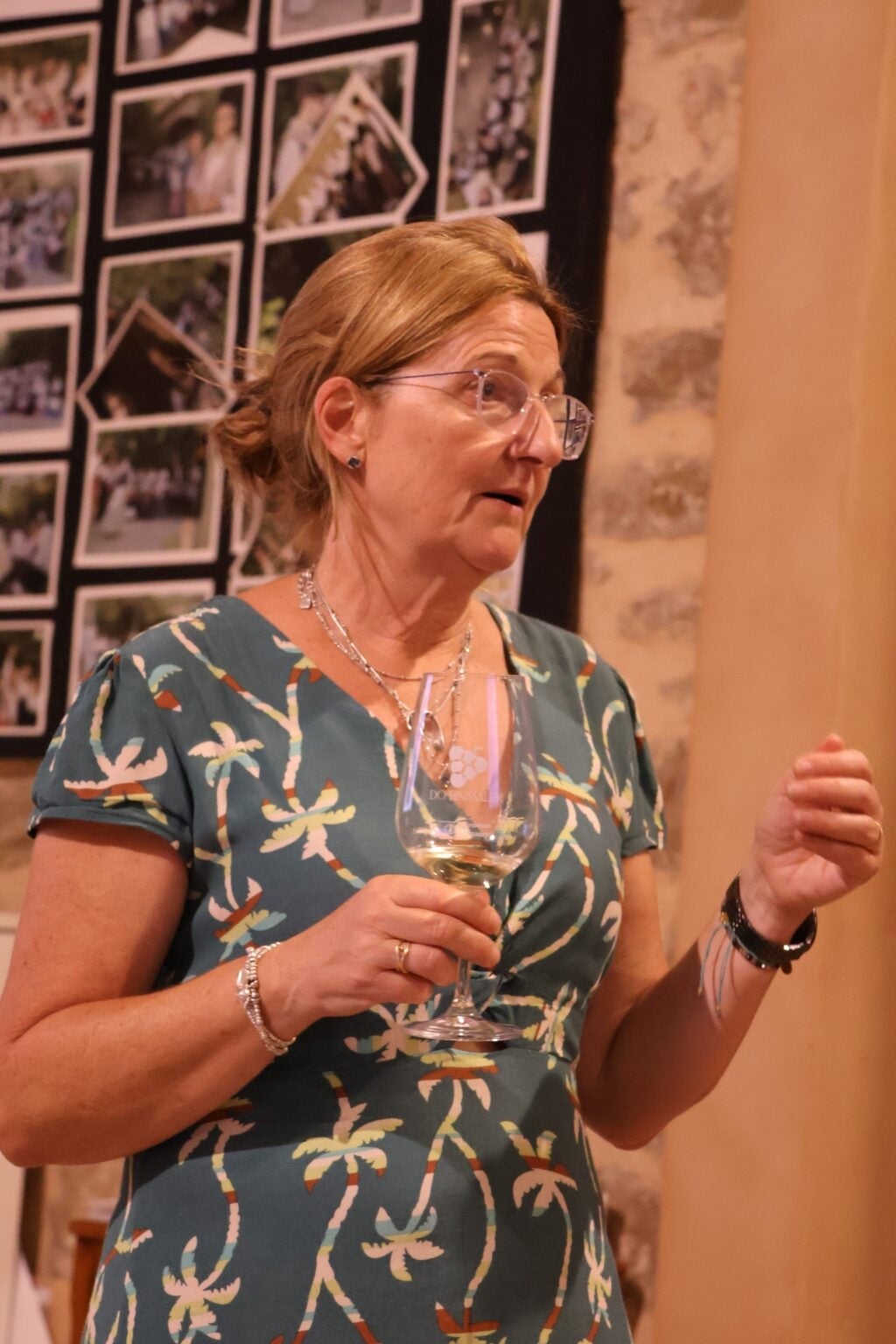 Marga Amat, directora tècnica del Consell Regulador, va explicar als assistents les tècniques d’elaboració d’un vi blanc tranquil i d’un vi escumós blanc de la DO Binissalem com a preàmbul d’un tast dirigit d’aquests dos tipus de vi. Per això, es van seleccionar dos vins genèrics, un vi blanc 2024 (58 % Premsal Blanc i 42 % Chardonnay) i un vi escumós blanc Brut Nature 2023 (100 % Premsal Blanc amb 15 mesos de rima).