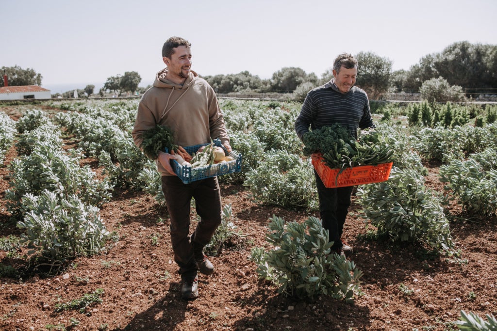 Sí, fem horta de fruita i verdura en ecològic. A la finca pròpia tenim 15.000 metres quadrats plants, però en total en gestionem 40.000 perquè també duem altres finques. Tinc trenta-un anys i formo part de la segona generació que ens dediquem al camp. Primer vam fer setze anys a la finca de Mongofra Vell i des de 2014 vam recuperar una finca familiar on ajudo al meu pare que encara està en actiu. Ho fem tot en ecològic i varietats locals.